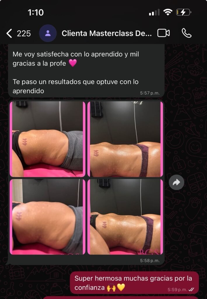 Lo mejor de esta masterclass, es que no solo aprenderás la teoría, sino que verás la aplicación real de la técnica en un paciente en vivo. Esto te permitirá comprender cada paso, resolver tus dudas en el momento y visualizar los resultados inmediatos que luego podrás replicar con tus propias clientas.a cualquier parte del mundo.